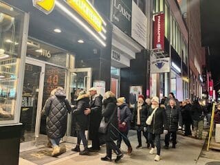 At the Christmas market on St Catherine Street in Montreal, the air was filled with the scents of poutine, sausages, hot apple cider, glühwein, hot chocolate, beaver tails, and churros. Handmade goods filled the stalls, and the group happily “got their steps in” while browsing and sampling. We even encountered a large peaceful demonstration complete with placard waving protesters and gendarmes on horseback as we walked back to the hotel.