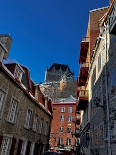 Our afternoon was free to roam, and after some window shopping our sugar theme continued with a hot chocolate and gingerbread reindeer break at a coffee shop in Lower Town. The funicular ride up to the Château Frontenac was fun and provided sweeping views of the St Lawrence River and south shore.