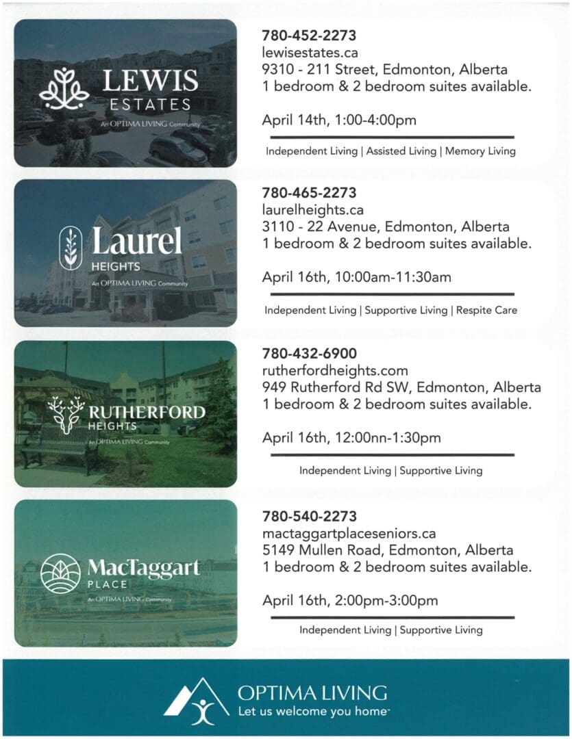 To ensure the best experience for everyone, and to help the seniors residences prepare for the number of visitors, we kindly ask that you RSVP if you plan to attend any of these Open Houses. Please call our Front Desk at 780 483 1209 to reserve your spot.