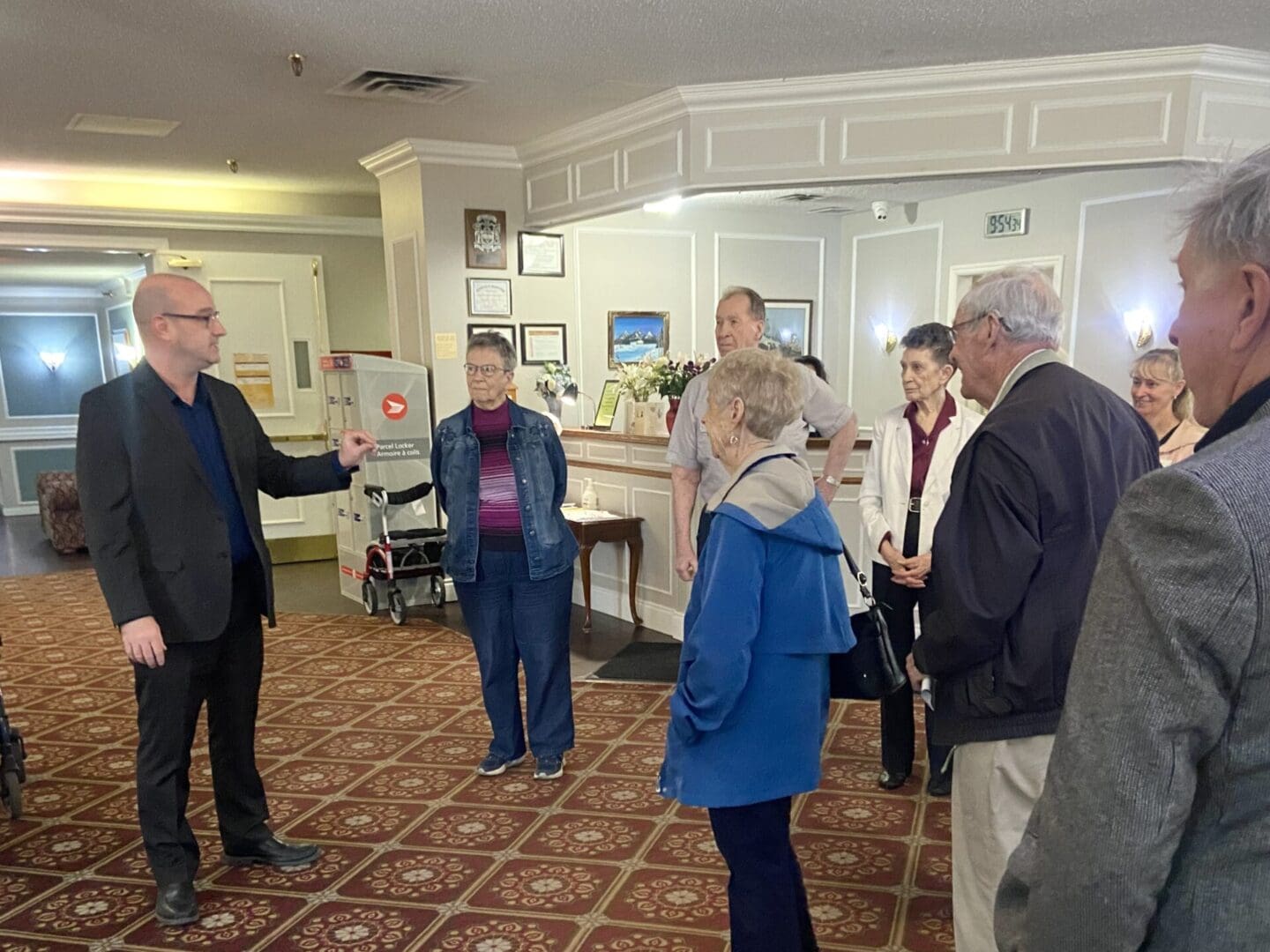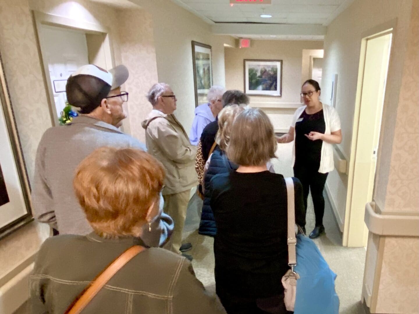 First up, we headed to The Waterford of Summerlea, and Trevor Ducherer, the General Manager, gave us a big welcome right in the lobby. To make it easier to see everything, we split into smaller groups. What was really cool is that Bill and Dot, the incredibly welcoming couple who actually live at The Waterford, volunteered to show us around and tell us about their firsthand experiences! We also had the pleasure of chatting with residents Gerry, Joan P, and Sherry in the lobby over lemonade and cookies.