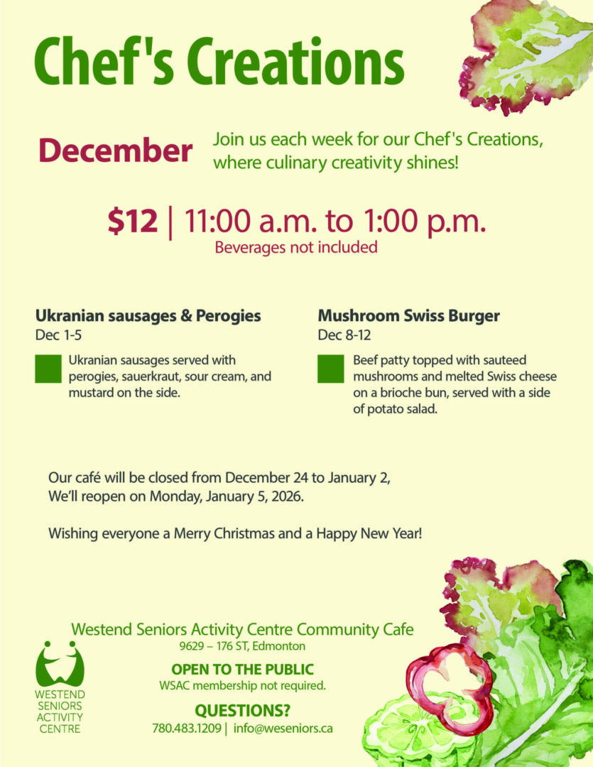 CHEF’S CREATIONS – OUR WEEKLY SPECIALS AT WSAC CAFE