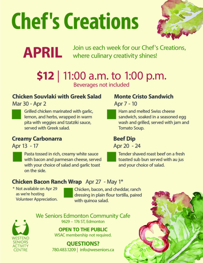 CHEF’S CREATIONS – OUR WEEKLY SPECIALS AT WE Seniors Edmonton CAFE