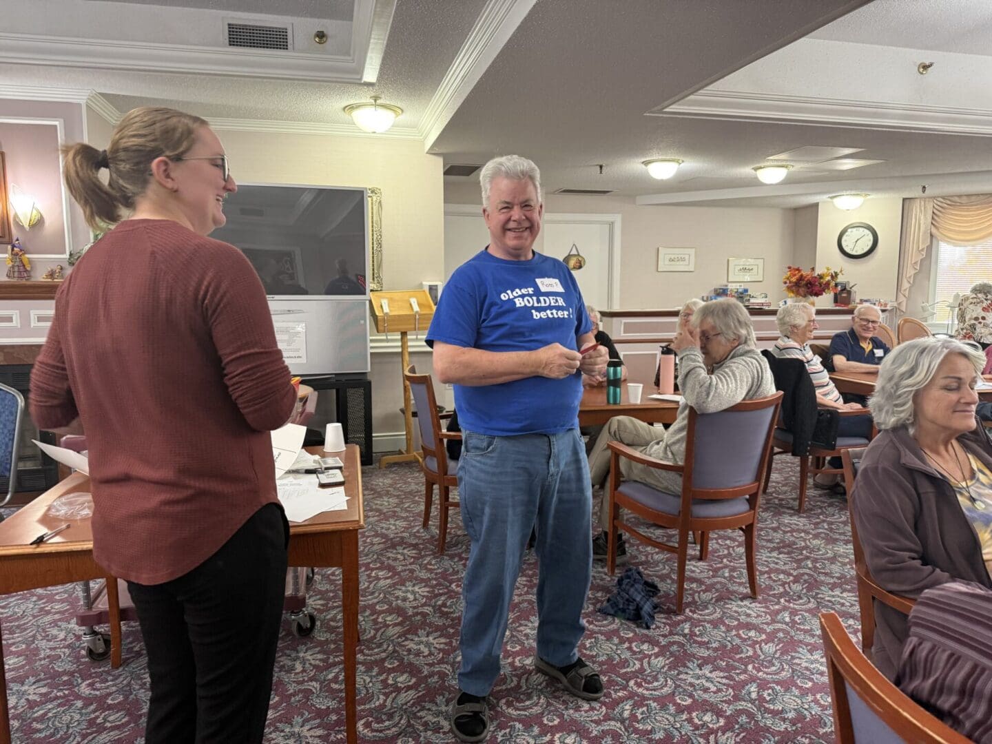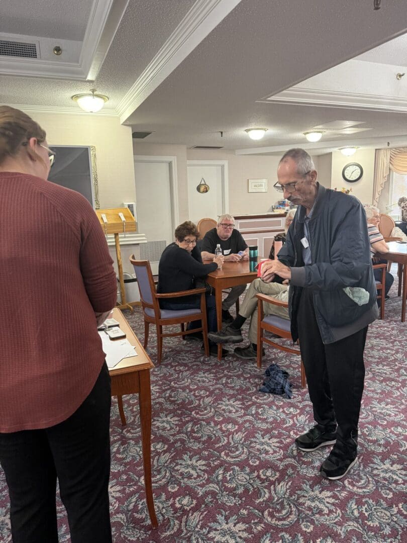 Jessica, the Recreation Coordinator, had everything beautifully prepared. We had 18 players in total — two of their residents couldn’t make it at the last minute, but luckily, a few of our members had brought friends “just in case.” Smart thinking! Jessica even worked with one of the players, Ross, to figure out how to keep the game going smoothly without a multiple of four.