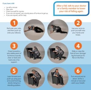 • If you are not injured, use a sturdy piece of furniture to get up.