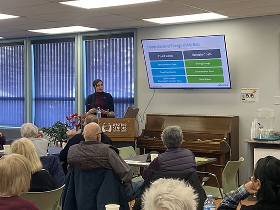 The presentation began by helping seniors better understand how electricity and natural gas services work in Alberta, how to read utility bills, and how to avoid common utility-related scams.