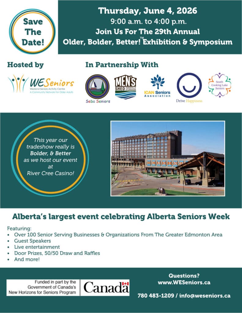 Join us for the 29th Older, Bolder, Better!™ Exhibition & Symposium (OBB) at River Cree Resort & Casino in Edmonton. This is a free event for seniors and a registered Alberta Seniors’ Week activity.